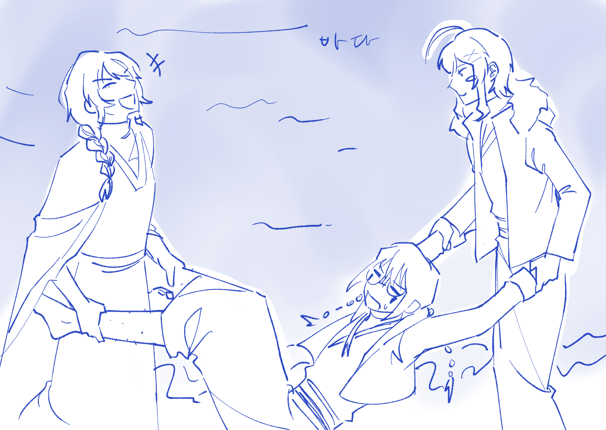 일케생긴녀석이고 아저씨예요 지부장이랑 싸우고 술마시고 돈빌림(네?) 애들이랑 재밌어보이죠 세션 내 포트레들... 3부엔 머리깎고 산들어감(아님) 낙서 더있는데 못찾겠슨 피크루도 이하동일